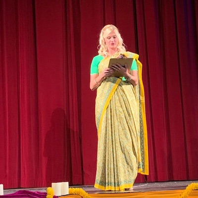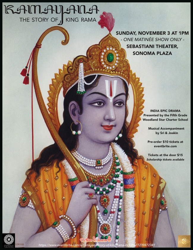 In addition to school performances, they had a public show at the Sebastiani Theater on November 3rd. The play was directed and produced by KD McComb, and costumed with her 20 year curated costume collection. The play was brought to life with the addition of live music- Sri Keshava & Joakin Eskasan make up the ‘Global Party People.’ They used traditional Indian instruments, along with electronic artistry to create mantra soundscapes to accompany the stage production. It was quite stunning!